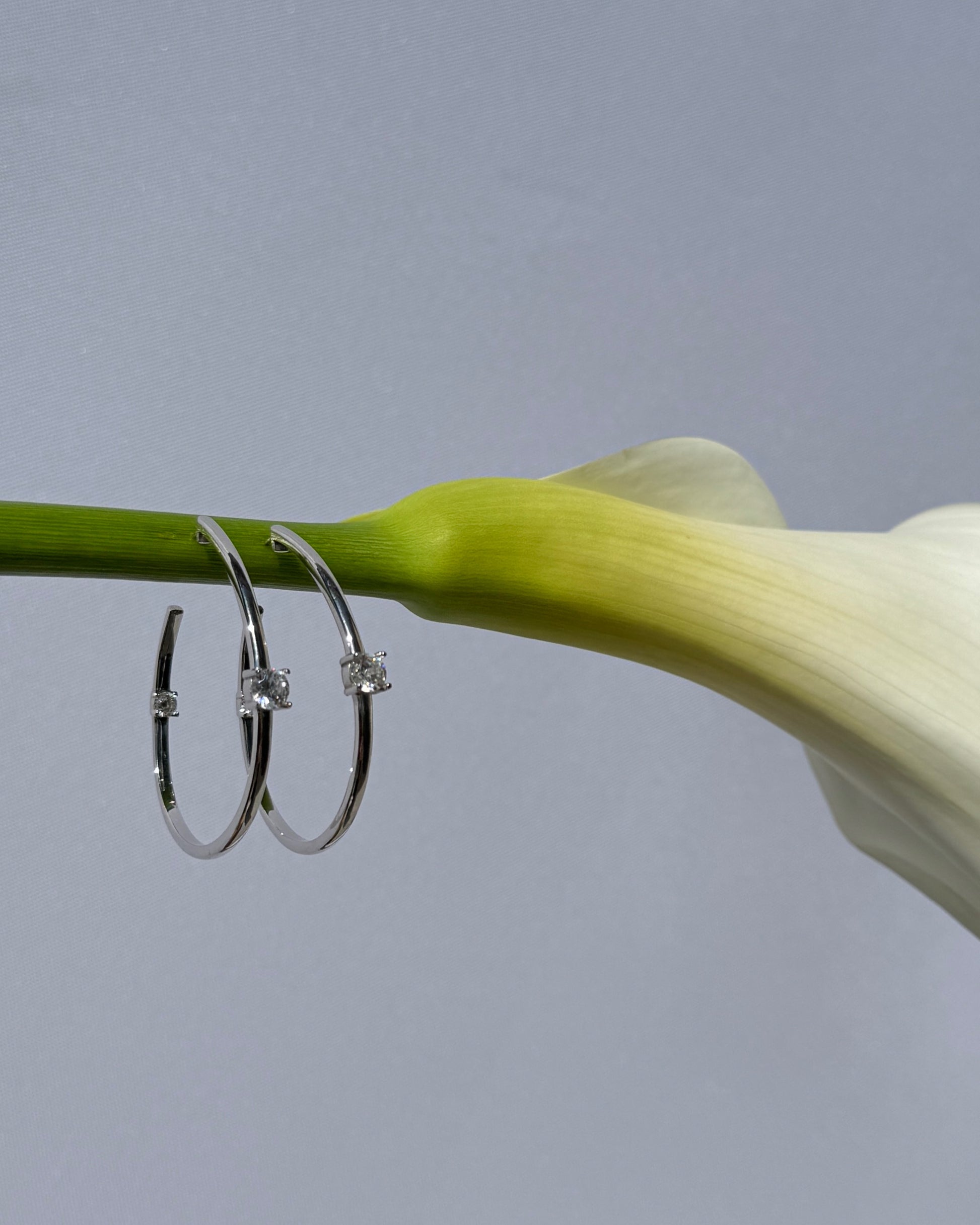 Diese tiefgründige Symbolik entfaltet sich in zarten, fließenden Formen: Zwei feine Zirkonia-Steine fangen das Licht ein und lassen die sanft geschwungenen Creolen erstrahlen.