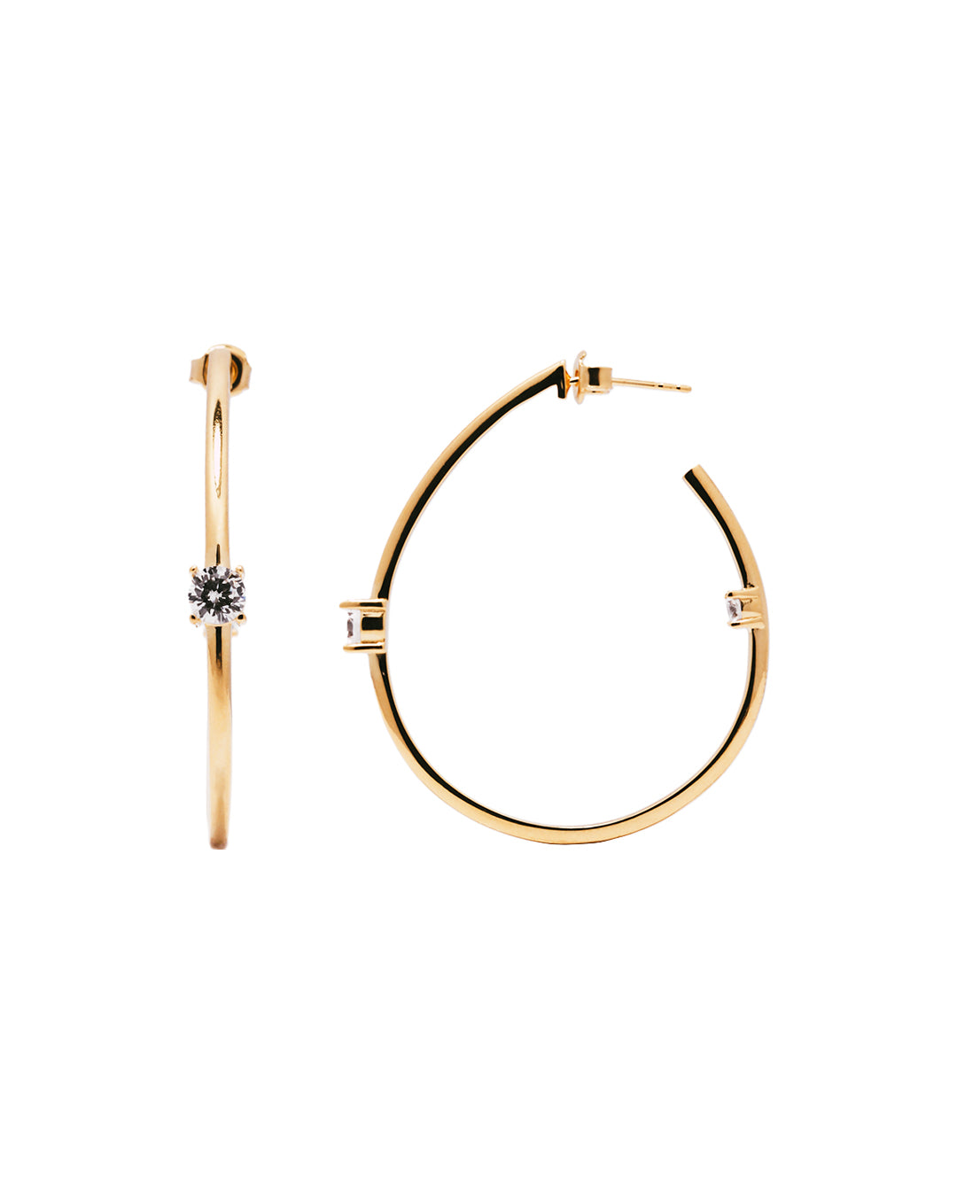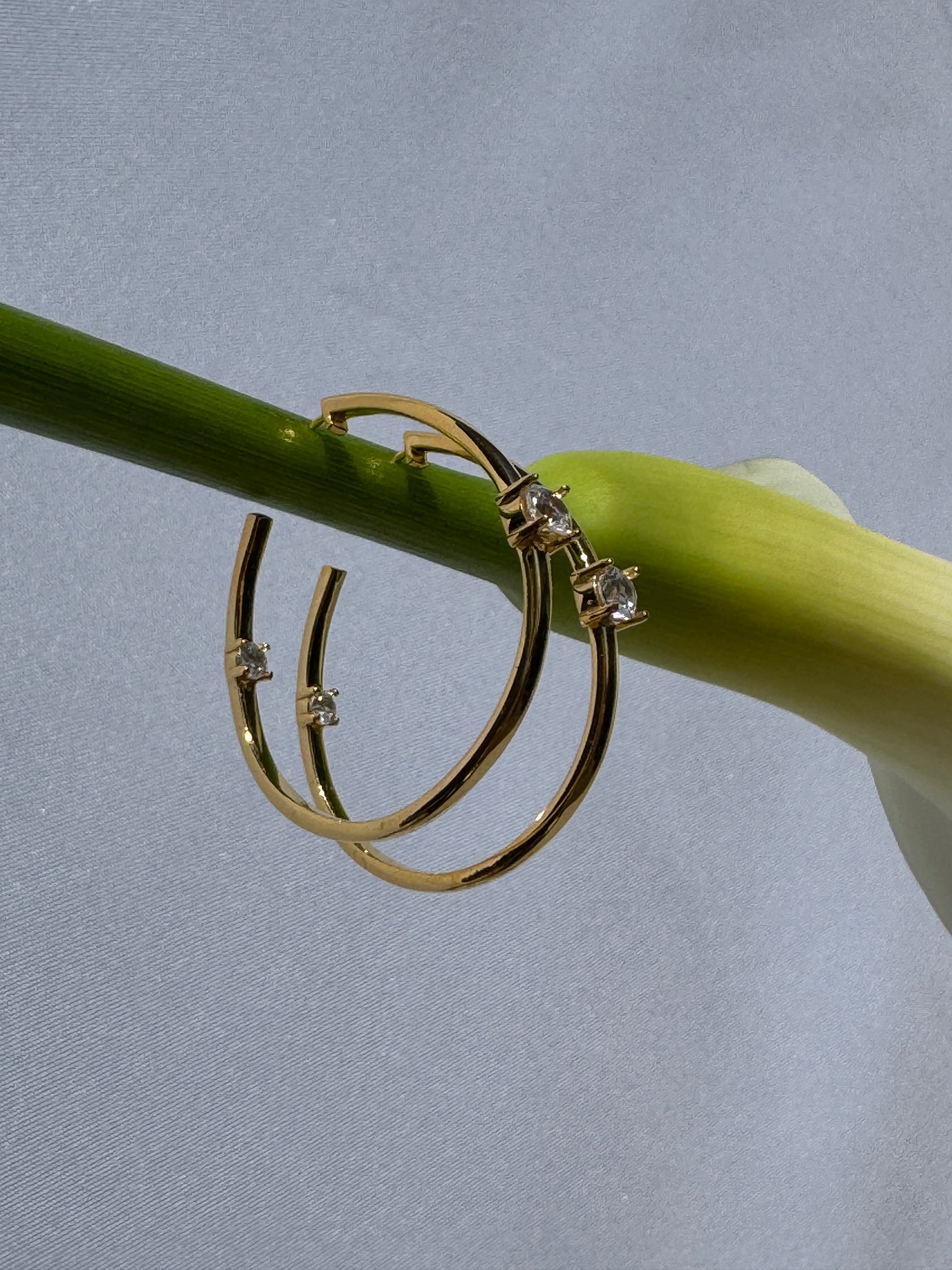 Diese tiefgründige Symbolik entfaltet sich in zarten, fließenden Formen: Zwei feine Zirkonia-Steine fangen das Licht ein und lassen die sanft geschwungenen Creolen erstrahlen.