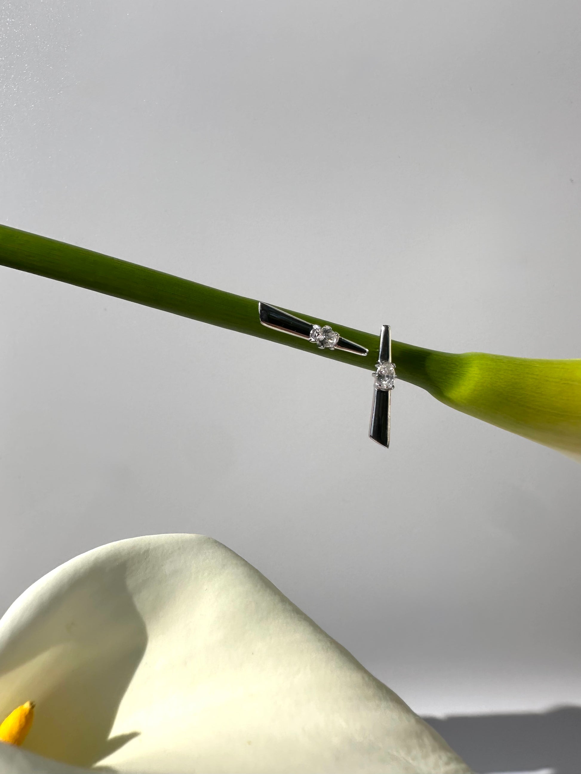 Minimalistisches Design trifft auf dynamische Symbolik: Ein einzelner Zirkonia Stein fängt das Licht mit der klarheit eines Blitzes ein - Ausdruck ästhetischer präzision für starke, moderne Frauen.
